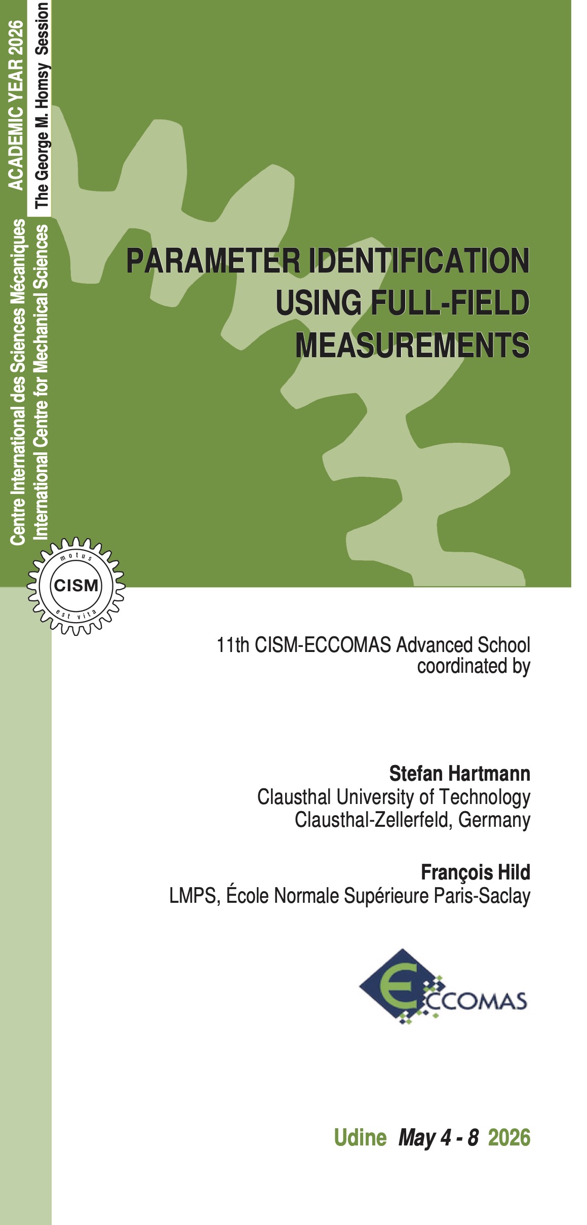 The course is structured in possible experiments, measurement techniques, design of specimens, full-field measurements, and filtering techniques. Then, the general structure of constitutive models of elasticity and inelasticity and their implementation into finite element programs is provided to solve discretized systems of equations associated with the underlying boundary-value problems to model experimental setups. These equations are treated within various parameter identification approaches (least-squares, neuronal networks, virtual fields method, equilibrium gap method, …). The reliability of parameter identification within both Bayesian and frequentist frameworks, together with the quantification of their associated uncertainties, is systematically examined. The course also addresses current limitations and problems of the approaches resulting from the experimental and theoretical points of view. The last part is devoted to illustrations and practical applications of various concepts introduced during the lectures.