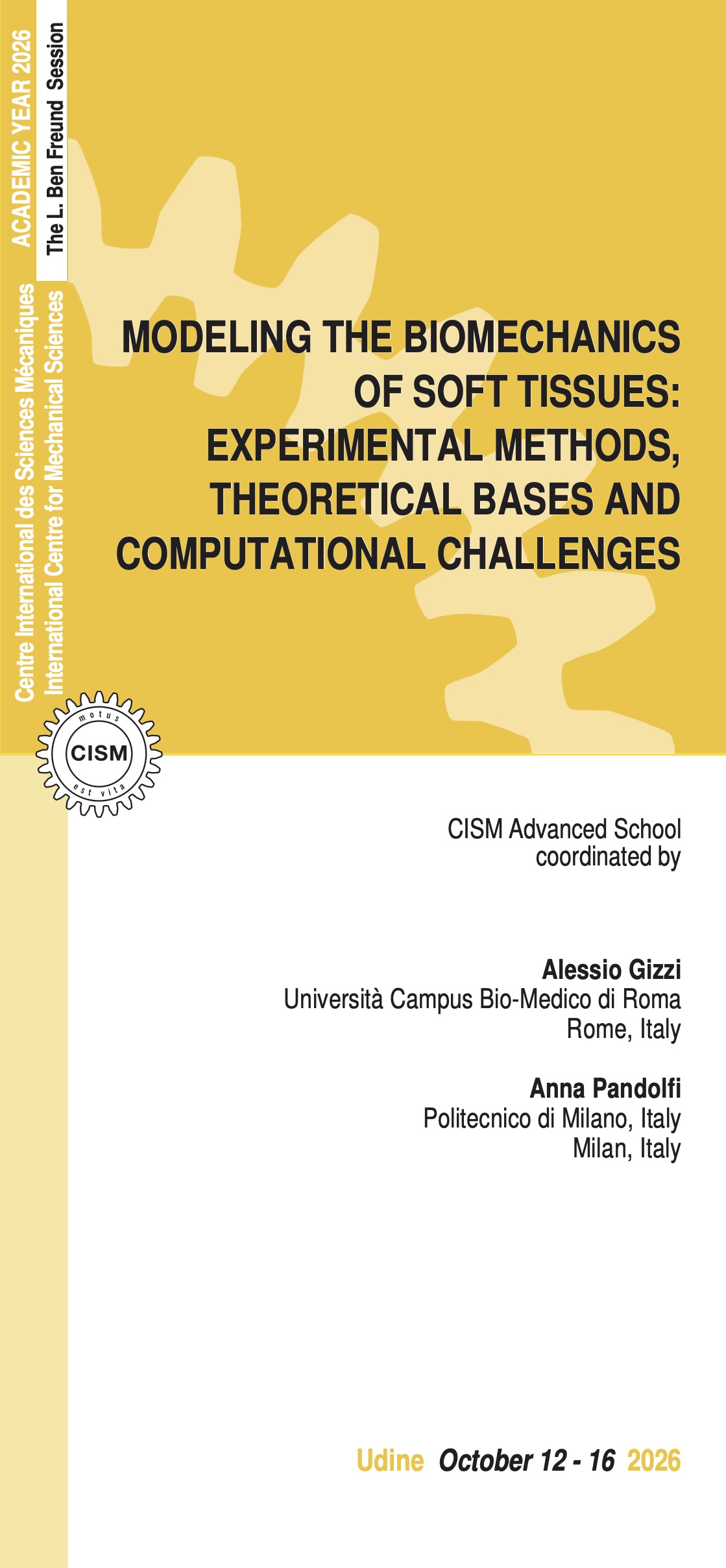 Involving the latest advances and ongoing challenges in soft tissue biomechanics, the course aims to foster awareness of the complex interconnections between experimental insights, theoretical formulations, and computational strategies necessary for developing robust and predictive and guide future biomedical applications. The course is primarily designed for graduate students and young researchers, who seek a rigorous and comprehensive introduction to soft tissue biomechanics. Participants will be provided with conceptual foundations and methodological tools, enabling them to critically approach the study of biological tissues at the interface of mechanics, physiology, and medicine.