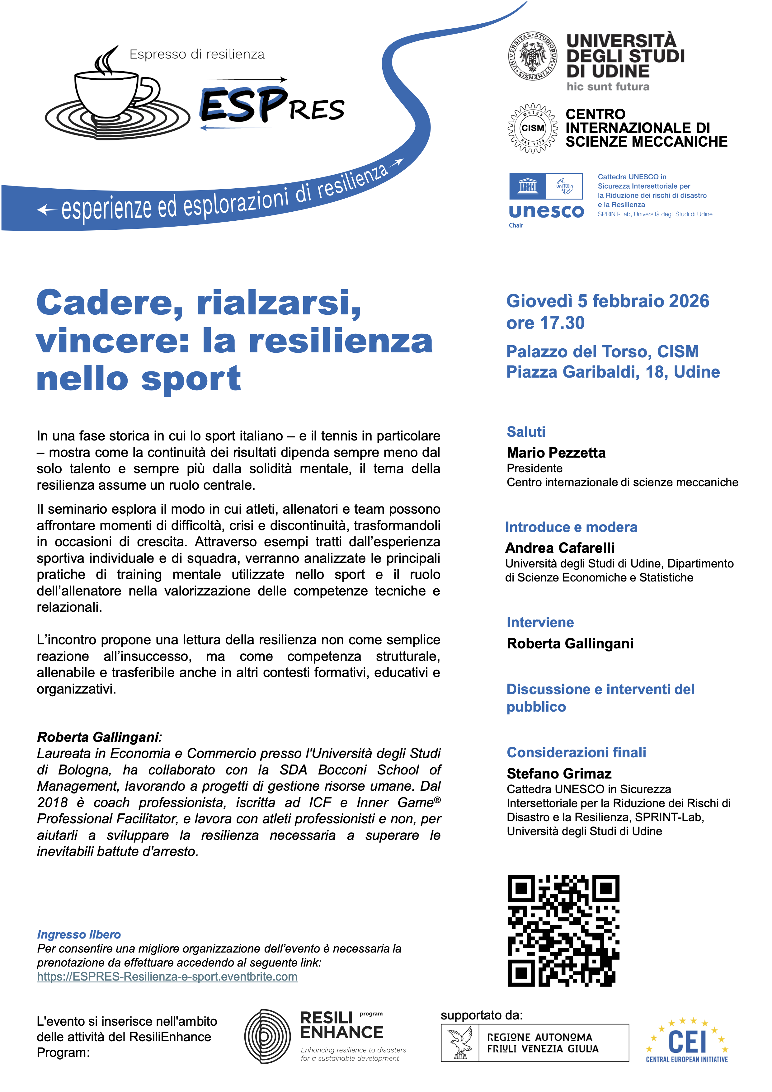 Conferenza nell’ambito del ciclo "Espresso di resilienza", promosso dalla Cattedra Unesco in Sicurezza Intersettoriale per la Riduzione del Rischio di Disastri e la Resilienza.