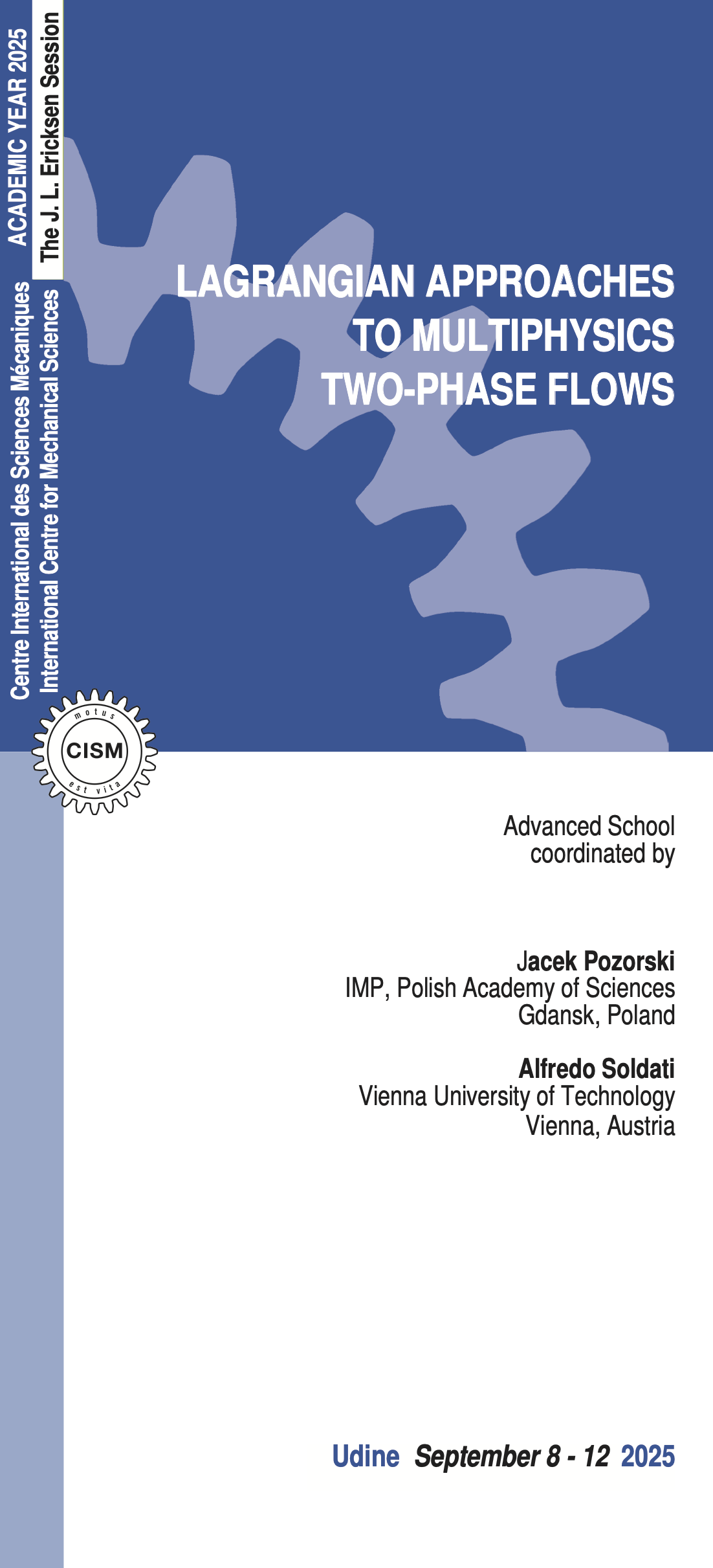 Introduction to Lagrangian approach and particle methods in fluid dynamics; Euler-Lagrange modelling of turbulent dispersion; Large-Eddy Simulation (LES) with point particles considering sub-scale effects (one-point stochastic models and structural-type models); Smoothed Particle Hydrodynamics (SPH) particle method: introduction and selected applications to two-phase flows.