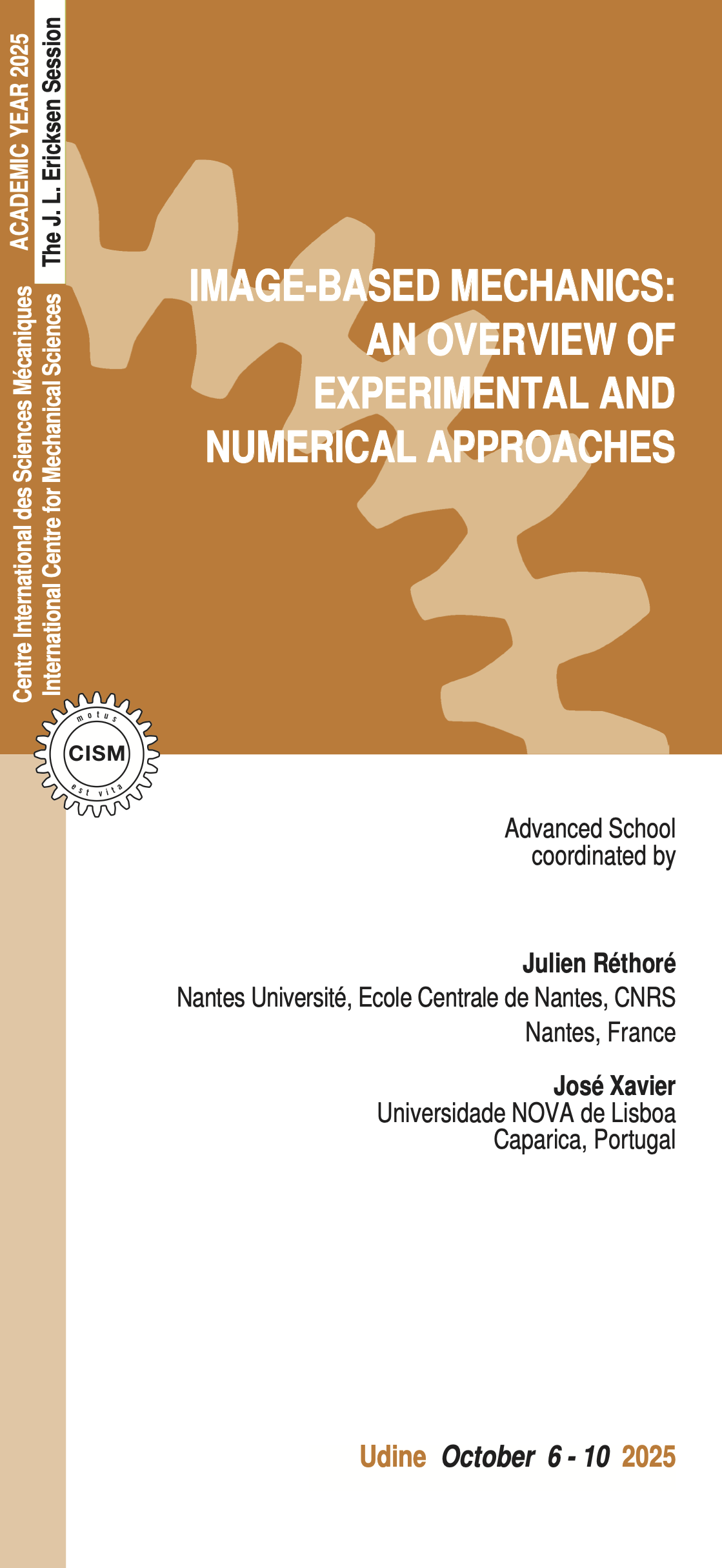 The proposed course is aimed at drawing an overview of recent developments in the field of image-based mechanics to give the participants clues for understanding how images are acquired, used or analysed and how they can be used for understanding and validation purposes. Having a global vision of the whole pipeline from the lab to the computing center is essential for practitioners and researchers to make their work more effective. The course is divided into several blocks to answer the following questions: how are images acquired? What can we do with images? How is image analysis formulated/implemented? How robust are the results? To help the participants in their future use of images, this comprehensive overview of fullfield measurements deployment and quantitative image analysis is coupled with an in-depth exploration of best practices in formulation and implementation. The immense potential of these techniques is showcased through discussions on related inverse methods for material characterisation, multimodal setups, and in-situ/in-operando implementations but also on the evaluation of their performance.