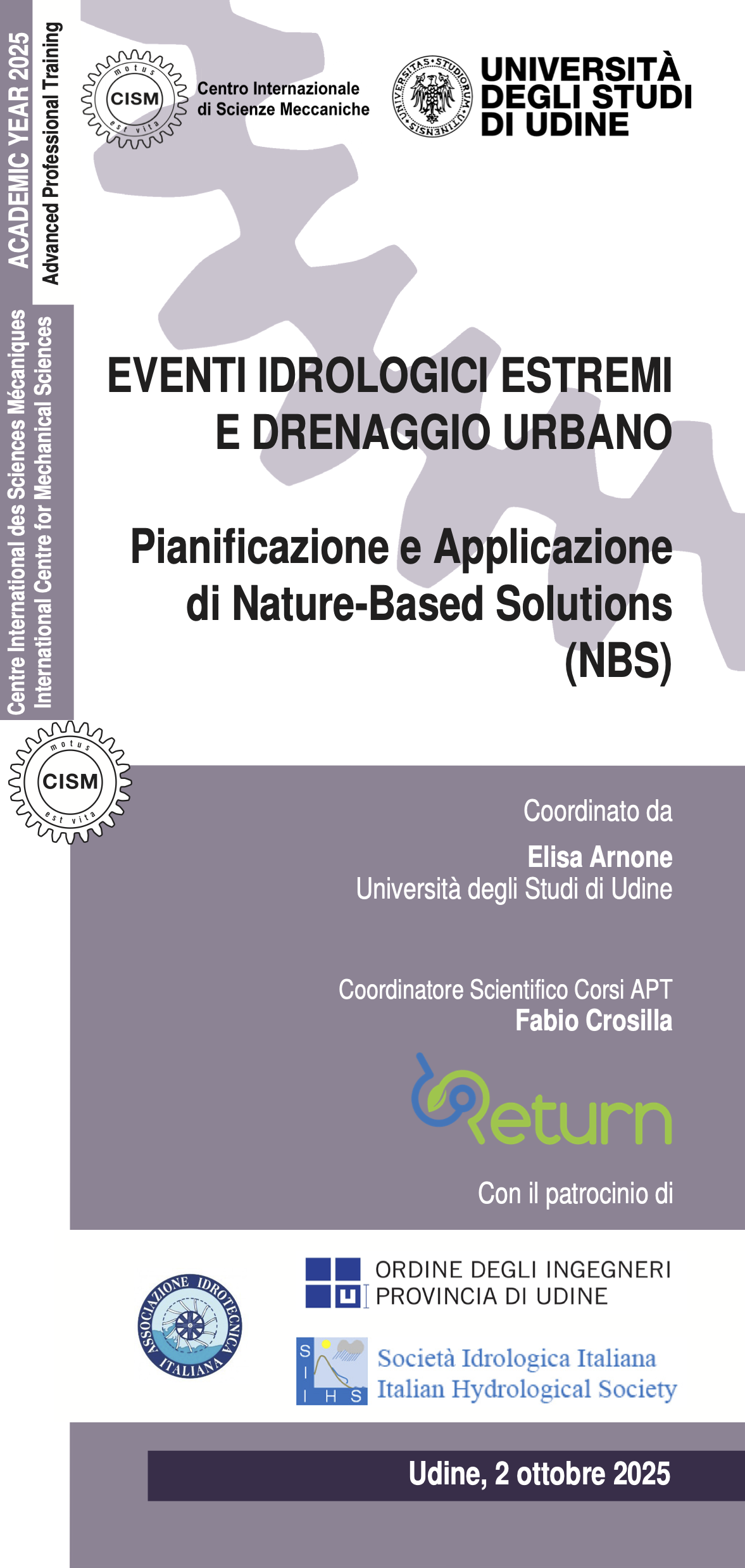 Questo corso prosegue e approfondisce quanto affrontato nel corso del 1° ottobre, intitolato “Eventi idrologici estremi e drenaggio urbano: cambiamenti climatici, eventi estremi e rischio allagamento nei centri urbani”. L’obiettivo è sviluppare competenze tecnico-applicative avanzate per l’analisi e la gestione degli eventi meteorici estremi in contesti urbani, con particolare attenzione al controllo dei deflussi superficiali causati da precipitazioni intense e improvvise. Verranno illustrati metodi e strumenti per valutare le criticità delle infrastrutture idrauliche esistenti e per progettare interventi innovativi e sostenibili. Particolare rilievo sarà dato all’adozione delle Nature-based Solutions (NBS), soluzioni che utilizzano sistemi naturali per mitigare gli impatti climatici e migliorare la resilienza urbana.